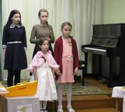 26 января на музыкальном отделении школы искусств состоялся праздник для первоклассников «Посвящение в музыканты». Ведущая (преподаватель Н.А.Жемойтук) пригласила ребят в волшебный мир музыки, но ей помешала вредная гостья Скрипуха (Варвара Кантаева), которая забрала волшебный ключик. Своими выступлениями юные музыканты постарались задобрить Скрипуху. Произведения на фортепиано исполнили Евгения Гомза, София Мишаева, Анастасия Харина, на флейте играли Роза Сковородкина и Алеся Калинина, обучающиеся по специальности «Хоровое пение» - Динара Абдулаева, Валерия Лелека, Милана Козлова и Маргарита Обухова – исполнили канон «Камертон». Все ребята очень старались и в итоге им удалось получить волшебный музыкальный ключ!