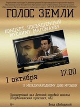 Ежегодно 1 октября отмечается Международный день музыки, который объединяет множество музыкантов во всём мире. В этот знаменательный день в Детской хоровой школе г. Петрозаводска состоялся концерт под названием «Голос Земли», посвящённый 80-летнему юбилею народного артиста СССР Муслима Магомаева.