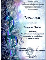 Преподавателей сольфеджио Г.Н.Харину и Н.А.Жемойтук порадовали обучающиеся 1,2,3 и 5 классов, приняв участие в VII Зональной дистанционной олимпиаде по сольфеджио, которая проходила с 29 ноября по 16 декабря на базе МОУ ДО «Шуйская музыкальная школа». Ребята имели возможность проверить свои способности, знания и практические навыки по сольфеджио.