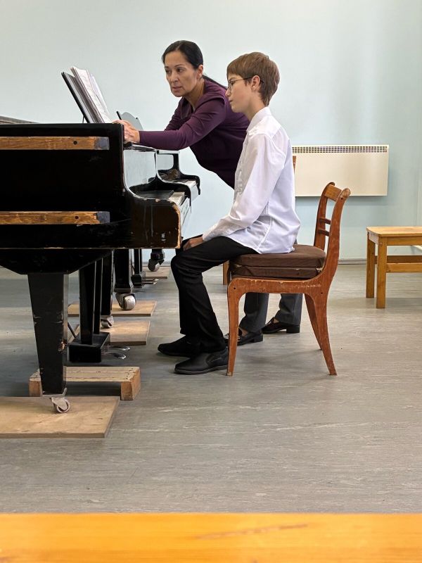 С учеником нашей школы Марком Футманом занималась Елена Борисовна Веремеенко, преподаватель специального фортепиано Петрозаводского музыкального колледжа им.К.Э.Раутио. Марк подготовил для работы четыре произведения, но отведенного времени хватило на тщательную проработку только двух произведений. Работа велась над этюдом Черни и пьесой П.И.Чайковского "Русская пляска". Надо признать, что это было не просто очередное занятие, а целое погружение в мир тонкостей исполнительского искусства, где каждые слово и жест наставника открывали новые горизонты. Елена Борисовна смогла с первых же минут урока найти подход к ученику, направляя юного музыканта с терпением и мудростью. Каждый совет, каждая поправка были не критикой, а приглашением к исследованию, к поиску собственного, уникального звучания. Марк получил ценные рекомендации по исполнению произведений, по используемым приемам в работе над этюдами и пьесами. По словам преподавателя Марка - Заслуженного работника культуры Республики Карелия Натальи Анатольевны Жемойтук - участие в мастер-классе стало важным шагом в его музыкальном развитии.