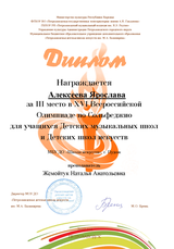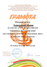 В феврале-марте 2019 года девять обучающихся «Школы искусств» г.Пудожа приняли участие в XVI заочной Всероссийской Олимпиаде по сольфеджио для учащихся Детских музыкальных школ и Детских школ искусств. Организатор Олимпиады – МБОУ ДО «Петрозаводская детская школа искусств им.М.А.Балакирева», привлеченные организации – ФГБОУ ВО «Петрозаводская государственная консерватория им.А.К.Глазунова» и ГБПОУ РК «Петрозаводский музыкальный колледж им.К.Э.Раутио» при поддержке Министерства культуры Республики Карелия.