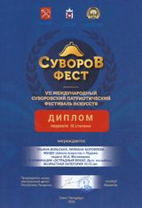 В 2020 году был проведён VII Международный Суворовский патриотический фестиваль искусств, посвящённый 290-летию со дня рождения великого полководца Александра Васильевича Суворова. С присвоением почётного статуса международного конкурса, данный праздник культуры и мастерства приобрёл по-настоящему широкий размах. В этом году участниками конкурса стали молодые исполнители из разных уголков России и стран ближнего Зарубежья.