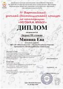 В декабре в г.Нижнем Новгороде в четвертый раз проходил традиционный Всероссийский конкурс по композиции «Музыка юных», в котором приняли участие многие юные композиторы со всей нашей страны и среди них двое наших обучающихся – Ева Минина и Александра Одинаева. Сочинения оценивали профессиональные композиторы во главе с председателем - композитором, кандидатом искусствоведения, доцентом Нижегородской консерватории им. М.И. Глинки, членом Союза композиторов РФ Присяжнюком Д.О. По итогам конкурса состоялась онлайн-видеконференция, которую провели организаторы конкурса и председатель жюри. Директор МБУ ДО «Школа искусств» №14 г.Нижний Новгород приветствовала всех участников, композитор Денис Олегович Присяжнюк поделился своими впечатлениями о конкурсе, отметил возросший уровень участников, обозначил общие черты и проблемы, с которыми сталкиваются юные композиторы. Все с нетерпением ждали объявления результатов, и они в очередной раз нас порадовали: Александра Одинаева стала Дипломантом, а Ева Минина Лауреатом 3-й степени!