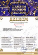 В декабре Ева Минина приняла участие еще в одном творческом соревновании – Международном многожанровом конкурсе классического искусства «Шедевры мировой классики» в номинации «композиция» и стала Лауреатом 2-й степени.
