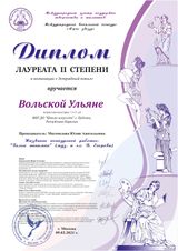 Вольская Ульяна получила звание лауреата II степени с новой песней «Белые панамки» на муз и сл. В. Егорова.