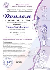 Также хочется подчеркнуть, что в этот раз наши исполнительницы решили не ограничиваться только вокальным направлением. Боровлёва Лилиана попробовала свои силы в номинации «Инструментальное исполнительство» по классу фортепиано и стала лауреатом III степени!